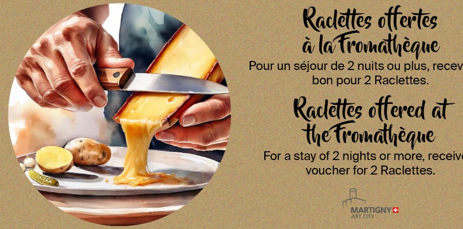 Dormez à Martigny et nous vous offrons la Raclette auprès de notre partenaire « la Fromathèque ».